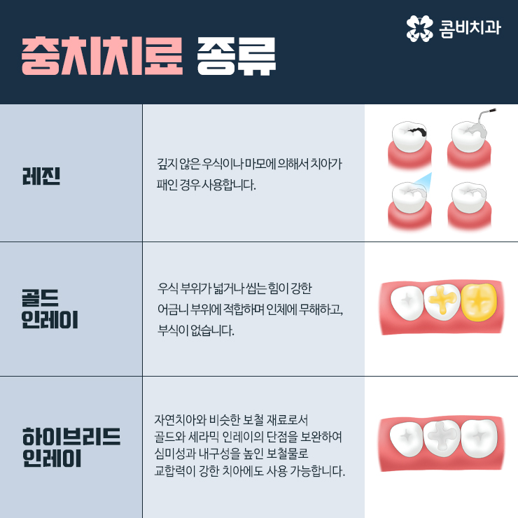 충치가 의심되거나 이미 진행된 경우에는 치료 방법을 상태에 맞게 선택하는 것이 중요한데 충치 치료는 충치가 어느 단계까지 진행되었는지에 따라 달라져요. 초기 단계의 충치는 겉으로 보기에는 큰 구멍이 없고, 약간 착색된 정도로 보이는 경우도 있는데 이 단계에서는 정기 검진을 통해 발견하고, 관리만 잘해도 진행을 늦추거나 멈출 수 있는 경우도 있으며 불소 도포나 생활 습관 조절만으로도 충분한 경우가 여기에 해당돼요.