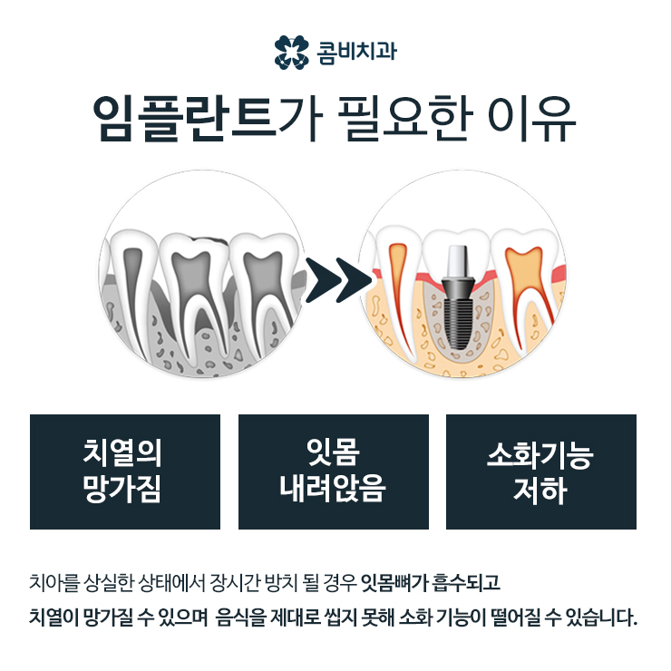 무엇보다 중요한 건, 이런 변화들이 대부분 조용히 진행된다는 점으로 별다른 통증이나 눈에 띄는 이상 없이 치조골은 줄고, 치아는 이동하며, 교합은 틀어지고, 결국 치아 전체의 건강이 흔들리게 되는 거예요. 그리고 이 시점을 넘기면 단순한 임플란트 치료가 아닌, 교정, 뼈이식, 보철 복합 치료가 필요해질 수 있어서 결과적으로 치료 기간과 비용이 훨씬 길어지고 늘어나게 되는 거예요.